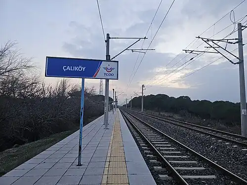 Çalıköy station is an unused railway station near Karacalar, Savaştepe, Turkey. Located just outside the village, passenger rail service bypassed the station in December 2017. The station was originally built by the Smyrna Cassaba Railway in 1912 and sold to the Turkish State Railways in 1934.
