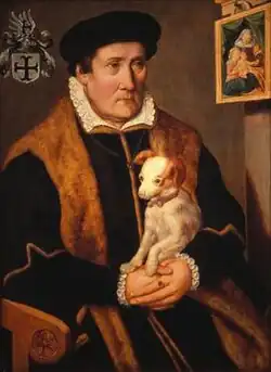 Two of Jonas's paintings were seized in Bordeaux in 1940 in the name of Hermann Göring. In 1944 Göring gave them to Alois Miedl, an art dealer, in exchange for a Vermeer painting (which turned out to be a Han van Meegeren forgery). After the war, the Netherlands Art Property collection ended up in possession of the paintings.[12] In December 2011 a committee recommended returning the works to Jonas's heirs.[13] The two paintings were Anonymous Portrait of a Man with a Dog and Théobald Michau's Landscape with cattle in a shallow river.[14]