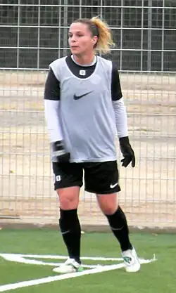 Élodie Ramos (born 13 March 1983) is a French football player currently playing for Montpellier HSC of the Division 1 Féminine. Ramos plays as a striker and is currently one of the longest-serving players at the club, whom she joined in 2002.[1]