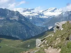 The East Collector captures waters of La Fouly and below the Trient Glacier and led by a gallery of more than 18 km (11 mi) long to the Esserts basin, hence the water is either turbined directly at the Vallorcine power station, or pumped into the Émosson reservoir.[3]
