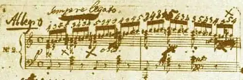 - ^ Moscheles, Ignaz. Studien für das Pianoforte zur höheren Vollendung bereits ausgebildeter Klavierspieler, bestehend aus 24 charakteristischen Tonstücken in verschiedenen Dur- und Molltonarten. Leipzig: H. A. Probst, 1827, reprint Kistner, 1860, No. 3, G major, p. 20.