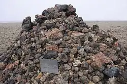 On July 10, 1907, two German scientists, Walter von Knebel and Max Rudloff disappeared while exploring the lake in a small boat.[1] The lake was described at the time as almost rectangular and about 5 by 3 km (3.1 by 1.9 mi) and 60 m (200 ft) below the floor of Askja caldera.[1] Knebel's fiancée, Ina von Grumbkow, led an expedition in search of them with a vulcanologist Hans Reck, but no trace of them was ever found. Suppositions at the time suggested that seismic volcanic disturbances could have caused a landslip or similar occurrence, and recorded that only two days previously the telegraph cable to Iceland had been broken by deep water disturbances for the first time since it was laid, close to the Icelandic coast. Reck's 1908 measurements were a mean lake temperature of 6.5 °C (43.7 °F), dimensions of 4.5 by 3 km (2.8 by 1.9 mi), no change in surface height, and a depth of more than 140 m (460 ft).[1]