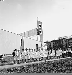 ![]() Confirmands outside the Österängen Church by the mid 1960's | |