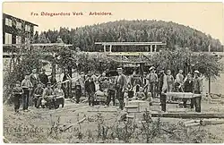 ![]() Miners at Ødegården Verk in the 1910s. Supervisor Erland Eide is in the boater hat, front center. | |