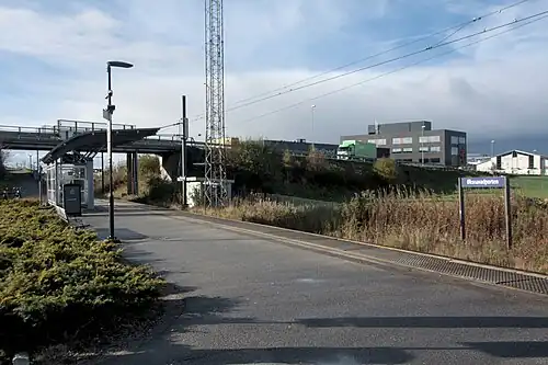 Øksnevadporten Station or Øksnavadporten Station (Norwegian: Øksnevadporten holdeplass) is a railway station located in Kvernaland in Klepp municipality in Rogaland county, Norway. The station is located on the Sørland Line. The station is served by the Jæren Commuter Rail between Stavanger and Egersund. The station is 22.42 kilometers (13.93 mi) south of the city of Stavanger.[1][2][3]