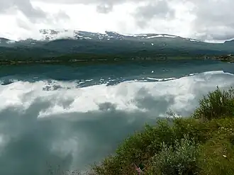 Øvre Sjodalsvatnet[2] is a lake in Vågå Municipality in Innlandet county, Norway. It is located in the Jotunheimen mountain range. The lake is located on the river Sjoa, just outside the boundary of Jotunheimen National Park. The Maurvangen campground and Bessheim mountain lodge are located near the southwestern shore of the lake.
