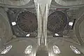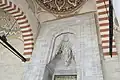 The two blue and turquoise underglaze-painted tile panels in the tympana of the courtyard windows were probably produced by the same group of tilemakers who had decorated the Yeşil Mosque (1419–21) in Bursa, where the tiles are signed as "the work of the masters of Tabriz" (ʿamal-i ustadan-i Tabriz). The running pattern of the Chinese influenced floral border tiles is similar to those in the smaller and slightly earlier Murad II Mosque in Edirne.[12][13]