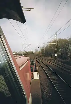 An Übergabegüterzug (abbreviated to: Üg or Übergabe, literally goods exchange train) is a goods train that moves individual goods wagons on the first or last stage of their journey i.e. from the start to the first railway hub or from the final railway hub to its destination. Between hubs the wagons are hauled by Nahgüterzüge (Ng), i.e. local goods trains, or Durchgangsgüterzüge (through goods trains). These trains generally cover relatively short distances and only have a few wagons that are delivered to and collected from industrial or loading sidings, either individually or in so-called wagon groups.