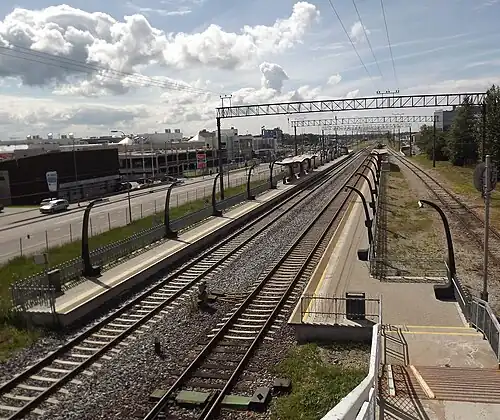 Ülemiste railway station (Estonian: Ülemiste raudteejaam) is a railway station in the Ülemiste sub-district of Tallinn, the capital city of Estonia. It is located approximately 500 metres from Tallinn Airport,[3] to which it has been connected by a tramline since 2017.[4]