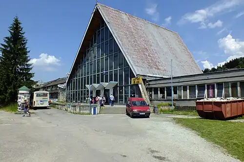 Due to its original architecture, the station building has been nicknamed Chata ("the chalet") by locals. It houses ticketing facilities and a restaurant.