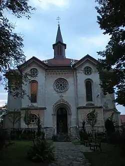 The Church of Saints Peter and Paul was built in the Neo-Romanesque style in 1859–1861. It replaced an old Romanesque church from the 13th century. The bells in the bell tower date from 1562.[3]