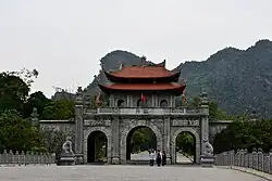The Đinh family originated from the village of Hoa Lư, Jinghai kingdom in modern-day Ninh Bình province, northern Vietnam. Đinh Bộ Lĩnh's father, Đinh Công Trứ had served both Dương Đình Nghệ and Ngô Quyền as governor of Hoan Châu (modern-day the city of Vinh). According to Chinese accounts, Bộ Lĩnh succeed his father as Duke of Hoan.[4] His father died when he was a child and he lived with his mother and other family members in a holy temple near a mountain in Hoa Lư.[5][6] Đinh Bộ Lĩnh had a sister named Đinh Quế Hương.