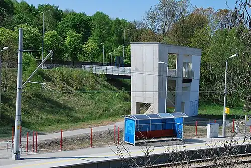 Łódź Marysin is a commuter railway station located in city of Łódź, in Bałuty district, Poland, on a loop line between Łódź Widzew and Zgierz stations, in the neighborhood of the former Radegast station.[1][2] The station was constructed as part of the Łódź Commuter Railway and serves only ŁKA trains running from Łódź to Zgierz.[3]