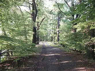 Also notable are the embankments planted with various tree species, forming linden, oak, hornbeam, and field alleys.[6][16] In the reserve, the largest trees are beeches, lindens, and oaks. The trees growing on the embankments shape the macroclimate of the reserve, as they serve as windbreaks. The gaps in the alleys are filled with shrubs, and the entire arrangement creates an ecological niche for many species of plants, fungi, and animals. Its location near the Moravian Gate, geographical and climatic factors, and past economic activities have made these tree-lined embankments one of the unique features of the reserve.[6]