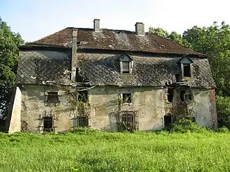 In the southern part of the reserve, between the Grabowiec and Brzeziniak ponds, there is a historic hunting lodge.[13][19] Built in 1783 by the Cistercian order, which owned these lands,[13][19] the lodge transitioned to the Racibórz princes in 1810 following the dissolution of the monastery. The princes used it as a resting place after hunts.[13] After World War II, the building served as a wilderness hut, but it is currently in ruins.[13]