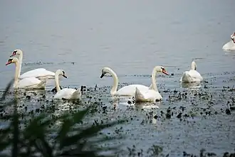 During the breeding season, species such as grebes (great crested and black-necked grebes), Eurasian bitterns, cormorants, greylag geese, and various Anatidae (gadwalls, garganeys, northern shovelers, common pochards, tufted ducks, and red-crested pochards) can be found there.[6][10][16] The red-crested pochard regularly resides in the reserve, making it one of only three such locations in Poland.[16] Rare species like the ferruginous duck, river warbler, collared flycatcher, purple heron, squacco heron, Eurasian spoonbill, barnacle goose, red-breasted goose, pied avocet, whiskered tern, and black-winged kite (unique in Poland) have also been observed.[10][16]