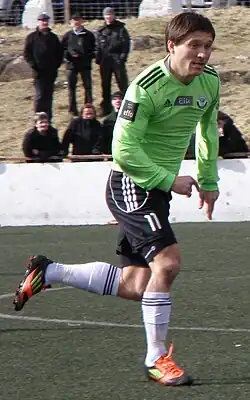 ![]() Łukasz Cieślewicz playing for B36 Tórshavn in 2012. | |||