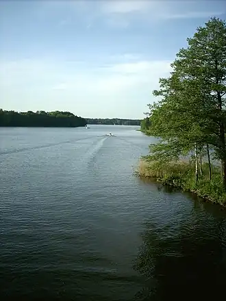 Ślesińskie Lake is a lake in central Poland known as Jezioro Ślesińskie in Polish. It is located in Konin County in Gmina Ślesin, near the town of Licheń Stary. It is a post-glacial ribbon lake with a strongly developed shoreline. To the south it is connected to Mikorzyńskie Lake.[1] It is part of the 32-kilometer navigable Ślesińskie Canal. It is one of several lakes known collectively as the heated Konin Lakes because the water temperature is raised as a result of the outflow received from two power stations.[2]