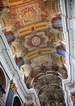 Although the village lay in the Protestant region of Masuria, the Roman Catholic faith was again approved in the Duchy of Prussia in 1605.[4] The chapel was rebuilt by the Jesuits and consecrated in 1619 by the Warmian prince-bishop Szymon Rudnicki and became a popular pilgrimage site among the Roman Catholic populace of the surrounding counties and other parts of the Polish–Lithuanian Commonwealth,[5] as well as the Lutheran Masurians.[4] Among the 17th-century pilgrims was Polish King Władysław IV Vasa.[5] In 1688, Warmian Bishop Michał Stefan Radziejowski laid the cornerstone of a new, great Baroque church, which was consecrated in 1693 by his successor, Bishop Jan Stanisław Zbąski.[5] From the 18th century the village was part of the Kingdom of Prussia. The Jesuit monastery was abolished, and King Frederick II of Prussia allowed the Jesuits to stay only as secular administrators of the church complex.[5] Franciszek Ksawery Rymkiewicz became the first post-Jesuit parish priest.[5] From 1871 to 1945 the village was part of Germany, administratively located within the province of East Prussia. After the defeat of Nazi Germany in World War II, in 1945, the village along with Masuria became part of Poland.