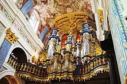 The most distinctive attribute and a treasure of the sanctuary is the moving pipe organ, erected in the years 1719-1721 by Johann Josua Mosengel.[15][16] The decorative figures and sculptures move as the organ is being played.[16][17] In 1944, it was damaged but repaired soon after.