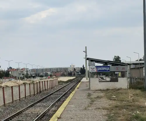 Şakirpaşa railway station (Turkish: Şakirpaşa istasyonu) is a railway station in Seyhan, Adana, on the Adana-Mersin railway. The station consists of two side platforms serving two tracks. There is no station building, only a small shelter on each platform. TCDD Taşımacılık operates frequent regional rail service from Mersin to Adana, along with further service to İskenderun and İslahiye. Together with regional trains, two intercity trains stop at Şakirpaşa as well; the Erciyes Express to Kayseri[1] and the Taurus Express to Konya.[2]