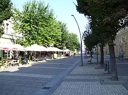 The town prospered until the First World War, when it was occupied and devastated by the Austro-Hungarian army and had its population halved (from cca. 14,000 to 7,000) on the orders of Kasimir von Lütgendorf, despite the fact that the Royal Serbian Army evacuated the town without resistance. Lütgendorf later ordered three of his own soldiers to be publicly executed by bayonet in the town square for drunkenly discharging their rifles despite orders from his superior Karl Tersztyánszky von Nádas to stop, leading to him being court-martialed and convicted for murder after the war in 1920.[5] World War I is also remembered for the battle on nearby Cer mountain where the Serbian army under general Stepa Stepanović won an early victory against Austria-Hungary in August 1914, the first Allied victory in the war. After the war, Šabac was decorated with the French War Cross with Palm (1920), the Czechoslovak War Cross (1925), and the Order of the Karađorđe's Star with Swords (1934).