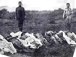 Zulfikarpašić concluded that the massacre was committed by armed men from Kolašin and Bijelo Polje who coordinated their attack on Šahovići and Pavino Polje on the 19 km wide frontline.[7] There are different estimates of the number of victims. Some sources estimate 600,[3][8] while some sources up to 900, all of them emphasizing that many women and children were among victims.[9] According to the official report, the massacre was committed by villagers from Polja village in Kolašin, members of the brotherhood of the murdered Bošković, who killed 120 Muslims and burned and robbed 45 houses.[10]