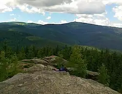 Žárový vrch (German: Brandberg)[2] is a mountain in the Hrubý Jeseník mountain range in the Czech Republic. It has an elevation of 1,101 m (3,612 ft) above sea level. It is located in the municipality of Ludvíkov, about 6.4 km northeast of the summit of Praděd mountain. There is a scenic viewpoint on the peak rock formation. The mountain is located in the Jeseníky Protected Landscape Area. The Jelení bučina nature reserve has been established on part of the western slope.