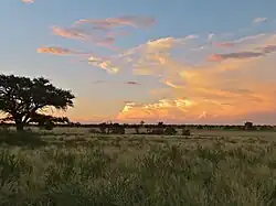 The two areas consist of semi-arid to arid tracts of the Upper Karoo (to the south) and the Southern Kalahari (to the north). Both areas are rich in archaeological traces inter alia of the Later Stone Age, while rocky hills and outcrops in the southern area (which has been referred to as ǀXam-ka ǃxau, meaning home of the ǀXam) have a wealth of rock art sites, preponderantly in the form of rock engravings.[2][3] In the ǂKhomani area to the north (where the sandy desert topography precludes rock art) a cultural mapping project contributes to a revival of interest in cultural traditions in the younger generation.[4]