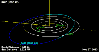 - ^ a b c d e f g "JPL Small-Body Database Browser: 5407 (1992 AX)" (2018-10-21 last obs.). Jet Propulsion Laboratory. Retrieved 19 November 2018.