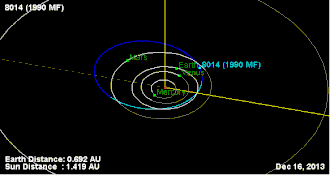 - ^ "JPL Small-Body Database Browser - 8014 (1990 MF)". JPL Small-Body Database. NASA. Retrieved 14 November 2011.