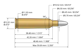 Bullet diameter | .224 in (5.7 mm) | |||||||||||||||||||||||
