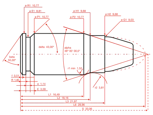 Shoulder diameter | 10.77 mm (0.424 in) | |||||||||||||||||||||||