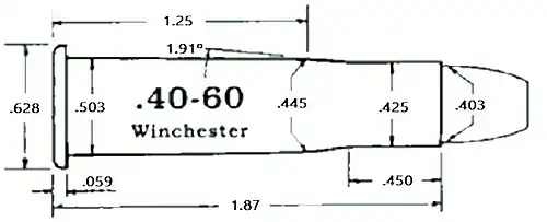The .40-60 Winchester is a centerfire rifle cartridge intended for 19th-century big-game hunting.[5] Nomenclature of the era indicated the .40-60 cartridge contained a 0.40-inch (10 mm) diameter bullet with 60 grains (3.9 g) of gunpowder.