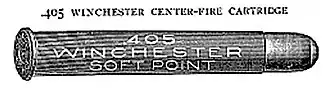 The .405 Winchester / 10.45x65mmR (.405 WCF) is a rimmed centerfire rifle cartridge introduced in 1904 for the Winchester 1895 lever-action rifle.[4] It remains to this day one of the most powerful rimmed cartridges designed specifically for lever-action rifles; the only modern lever action cartridges that exceed its performance are the .50 Alaskan, .450 Alaskan, .475 Turnbull, .348 Turnbull, and the .450 Marlin. The .405 was highly regarded by U.S. President Theodore Roosevelt during his safari in East Africa.[5]