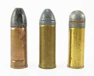 The .44 Colt / 11.5x28mmR is an American centerfire revolver cartridge that was produced commercially from 1871 to 1940.[1]