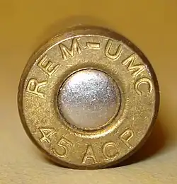 The .45 Remington–Thompson (11.4x25mm) was an experimental firearms cartridge designed by Remington Arms and Auto Ordnance for the Model 1923 Thompson submachine gun, a variant of the Model 1921 with a longer barrel, with the intent of increasing the power and range of the weapon.[2][4] While some variants of the 1923 were produced, the rifle and round did not find commercial success.[4]