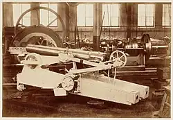 Until late 1875 the Rijks Geschutgieterij had cast bronze guns for the navy.[21] The navy then founded its own gun foundry at Rijkswerf Amsterdam, because the Minister for War did not want to produce guns for the navy due to capacity problems. In June 1877 the navy gun foundry started to operate. It cast guns designated as No. 2.[22] This casts some doubt about whether the Koninklijke Fabriek van Stoom- en andere werktuigen really finished guns founded by Rijks Geschutgieterij, or whether this applied to guns cast in Amsterdam from the start. In total about 43 regular 12 cm K.A. No. 2 were cast by the Rijkswerf, and 58 steel hard 12 cm K.A. No. 2 were cast by the Rijkswerf.