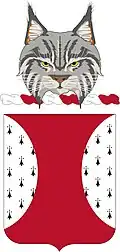 On a wreath of the colors Argent and Gules, the head of a northern lynx caboshed Proper. Motto: SEMPER VIGILANS (Always Watchful).