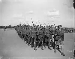 In the months before the outbreak of war the TA was doubled in size, with most units and formations creating duplicates. 26 Infantry Brigade was formed in 9th (Highland) Infantry Division as the 2nd Line for 152 Brigade, with some of its battalions formed by reversing the mergers of the 1920s.[20] After the TA was mobilised on 1 September 1939 152 Brigade had the following composition:[21]