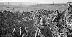 During November 25-27 the 169th and 422nd made repeated assaults along both banks of the Chervlenaya in an effort to envelop Tsybenko from west and east. The 169th had taken a small bridgehead north of the Karavatka Balka, which served as the base of its attacks. The village, as well as its southeastern and eastern approaches, were held by the 1st and 2nd Battalions of 371st Infantry's 670th Regiment. The 169th's divisional history describes the frustrating battle as follows: