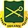 - A gold insignia consisting of a diagonal band divided throughout by a radiant partition line gold and scarlet, all within a green annulet, the upper part inscribed with the motto 'Combat Support' in gold letters and the lower part surmounted by two gold sprigs of oak leaves; overall an upright white sword.