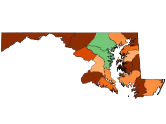 Baltimore (City and County) | 643 | 38.16% | 1,042 | 61.84% | -499 | -23.68% | 1,685 |