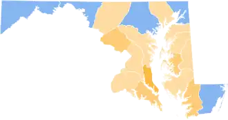 | Baltimore (City and County) | 5,917 | 43.38% | 7,725 | 56.62% | -1,808 | -13.24% | 13,642 |