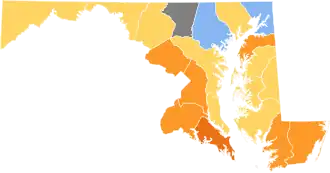 Baltimore (City and County) | 6699 | 44.89% | 8222 | 55.11% | -1523 | -10.22% | 14,921 |