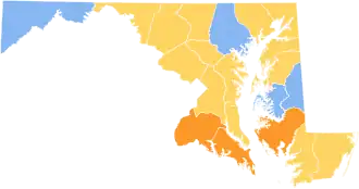 Prince George's | 1051 | 58.88% | 733 | 41.06% | 1 | 0.06% | 318 | 17.82% | 1785 |
