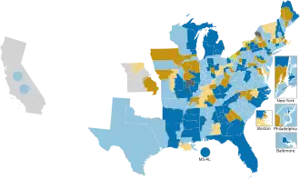 7. ^ In 1845, Congress passed a law providing for a uniform date for choosing presidential electors (see: Statutes at Large, 28th Congress, 2nd Session, p. 721). Congressional elections were unaffected by this law, but the date was gradually adopted by the states for congressional elections as well.