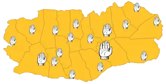 ![]() Wallachian constituencies, by number of deputies sent to the ad hoc Divan. |