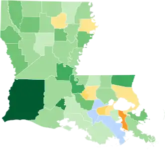 Calcasieu | 396 | 94.29% | 24 | 5.71% | 0 | 0.00% | 420 |