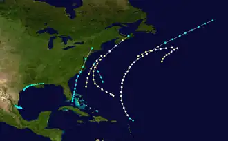 - ^ a b Michael Chenoweth (December 2014). "A New Compilation of North Atlantic Tropical Cyclones, 1851–98". Journal of Climate. 27 (12). American Meteorological Society. Bibcode:2014JCli...27.8674C. doi:10.1175/JCLI-D-13-00771.1. Retrieved April 29, 2024.